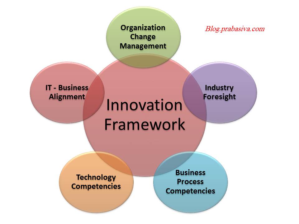 Let the program office develop this framework. The framework is a tool helps the organization to think outside the box within a business context boundary. There are five components to the framework. They are a) Organization change management: Partner with human resource department. Bring necessary training and coaching to the organization that helps members of the organization to think outside the box. Instill during the training that organization is willing to face both positive and negative consequence of each individual who are thinking outside the box. b) Business-IT alignment: Strong partnership with business team is critical for the innovation program office’s success. To accomplish it, identify partner relationship manager or IT ambassadors for each business unit and develop a sustainable bi-directional communication plan to enable fluid ideas flowing between all teams. c) Industry insights: Partner with the business strategy or business development team. Provide a periodic economical and industry data pertains to the business unit to entire organization. The organization must be aware of whom they are competing in the market, what is the market volume, market segment, how the distribution are spread out, what are the growth opportunities in the competitive landscape and etc. d) Business process competencies: Partner with business process management team or business process operation team or the team who manages the business process for the entire organization. This component of the framework should help the reader of the framework to understand how organization makes money. e) Technology competencies: Identify technologically savvy and curious members in the organization and ask them to study game changing technology trends which are in the pipeline. At this time the game changing technology trends are: big data, mobile computing, social computing and cloud computing. The members must not be nominated by managers, the members of the team must be volunteered who wants to contribute in this domain.
